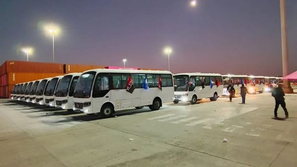 En el acto de salida de las unidades de buses, estuvieron presentes representantes de las cooperativas del transporte del país.