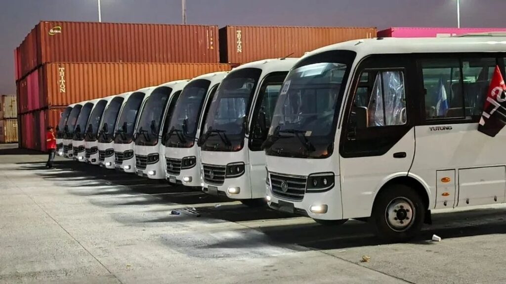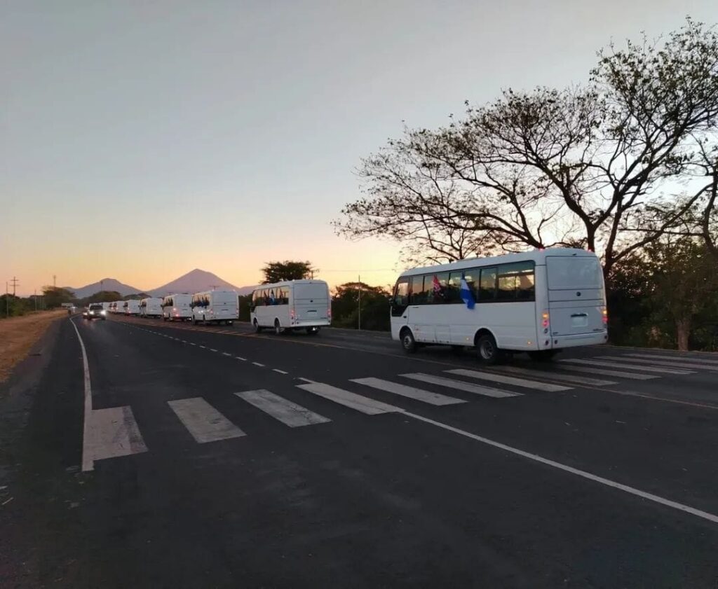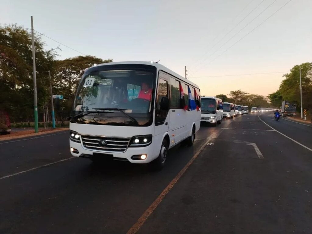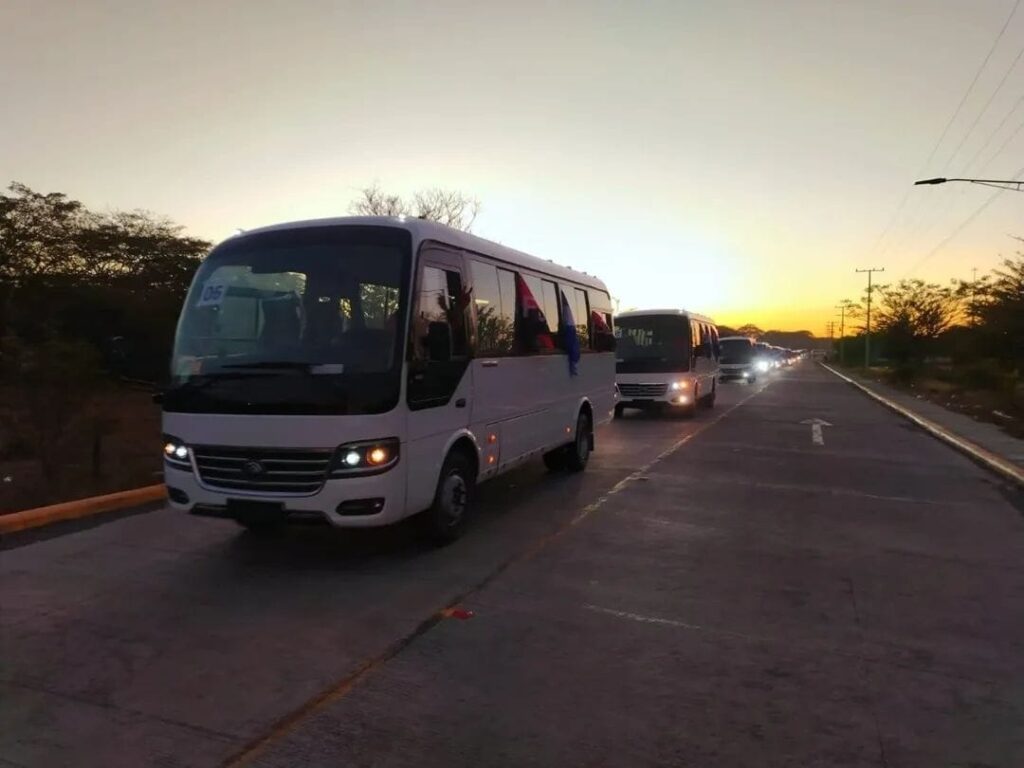Desde el Centro Logístico Julia Herrera de Pomares, ubicado en el municipio de El Realejo, departamento de Chinandega, este martes salieron hacia Managua, las 180 nuevas unidades de buses que llegaron en días anteriores, procedentes de la República Popular China.