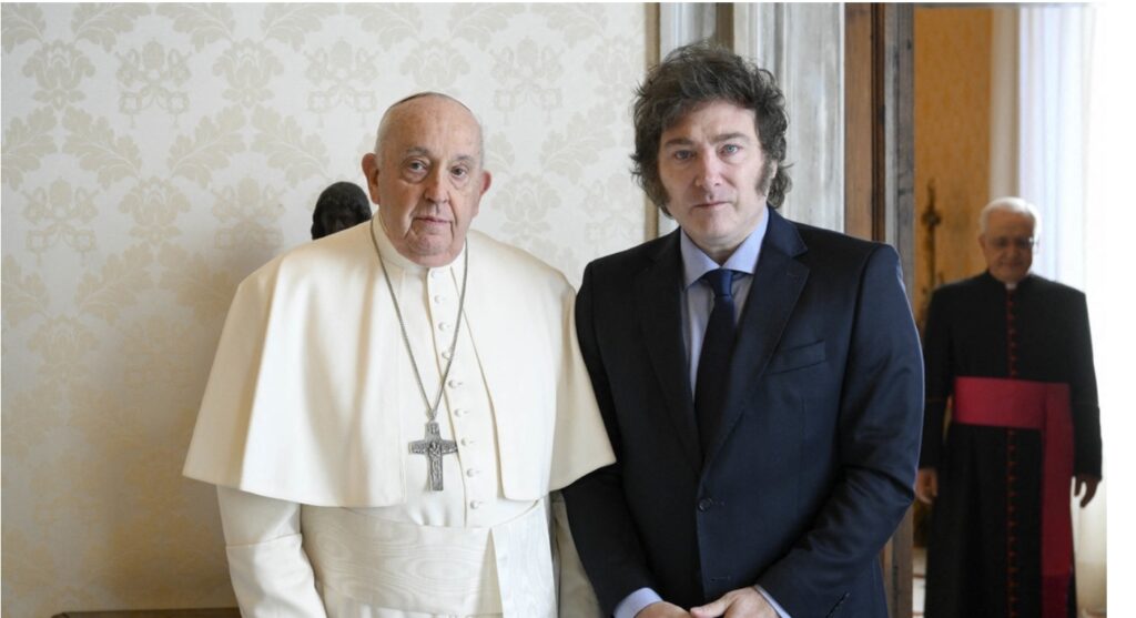Milei mantuvo este lunes por primera vez una reunión de una hora con el Papa en la Santa Sede, en el marco de una gira por Roma que incluyó un encuentro con su homólogo italiano, Sergio Mattarella y la primera ministra Giorgia Meloni, con el objetivo de “profundizar la relación bilateral” entre ambos países.