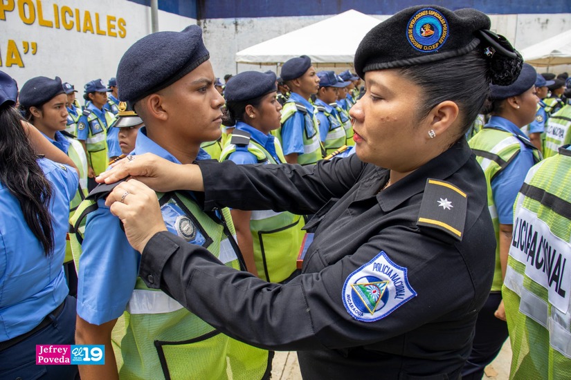 Con la graduación de 345 nuevos oficiales la Policía Nacional a través de la Universidad de Ciencias Policiales Leonel Rugama en Managua clausuró este jueves el I curso básico 2024, bajo el lema Nicaragua tiene paz, informó la rectora de la universidad, comisionada general Zaida Pineda.