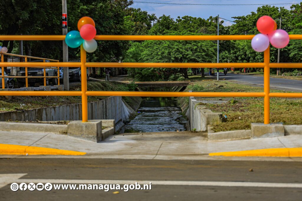 La Alcaldía de Managua entregó este jueves a las familias que habitan en el barrio Américas I del Distrito VII,.la construcción de una caja puente la que ayudará a descongestionar el tráfico vehicular.