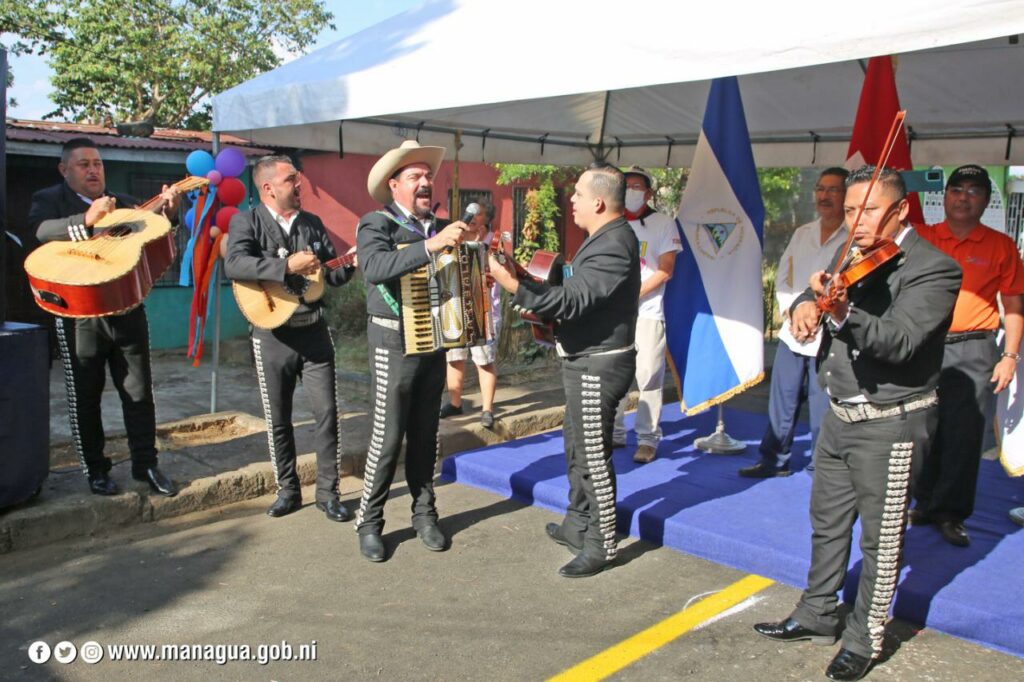 Con una canción dedicada al Comandante Daniel Ortega Saavedra y a la Revolución Sandinista, el mariachi Garibaldi participó de la inauguración de 8 cuadras de calles pavimentadas en el Barrio Pedro Arauz Palacios del Distrito IV.