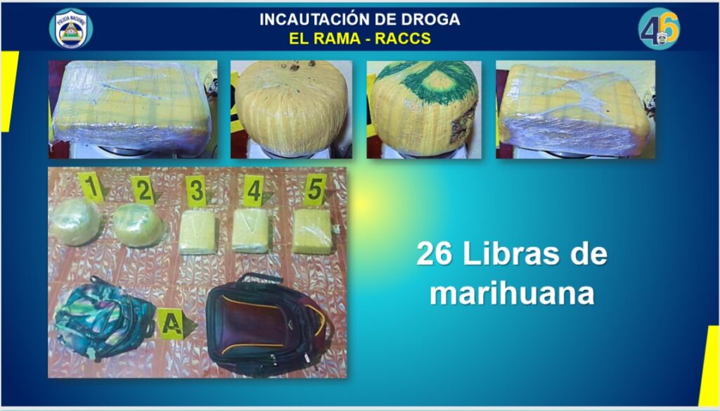 La Policía Nacional informó este lunes que durante la última semana, se decomisaron a diversos sujetos 110 libras de marihuana, de estas, 27 en Managua, 49 en Matagalpa, cuatro en Bluefields, 26 en el Caribe Norte y cuatro más, a dos costarricenses en el Caribe Sur.