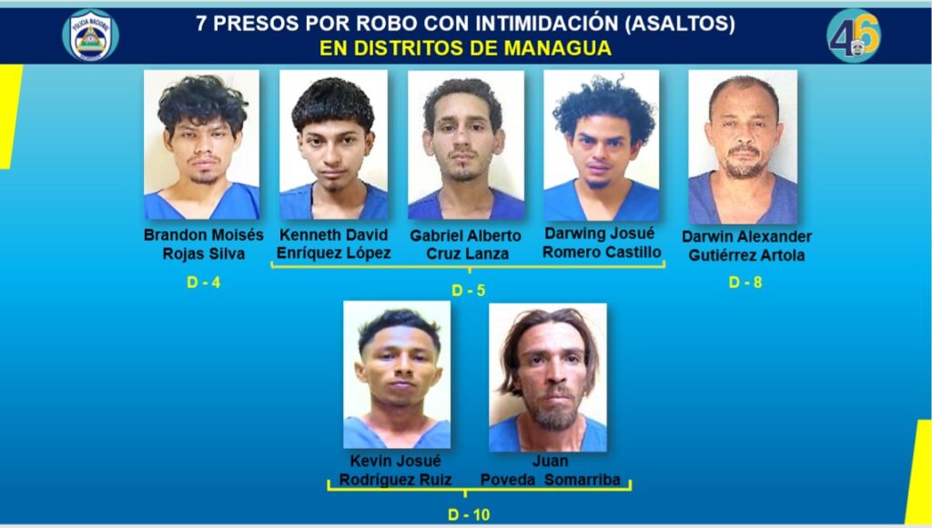 El Comisionado General destacó la detención de 13 sujetos por cometer robo con intimidación, siete en los diversos Distritos de Managua y seis en Chinandega, Masaya y Granada.