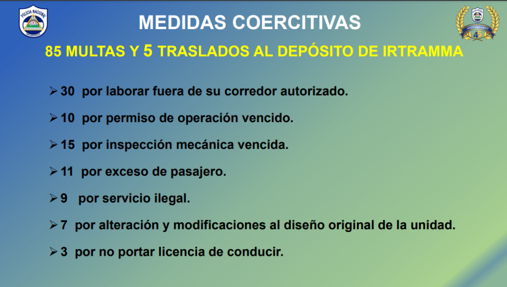 Las unidades trasladadas fueron por transitar fuera de sus corredores, permisos vencidos, exceso de pasajeros, alteración del diseño original de las caponeras y no portar licencias.