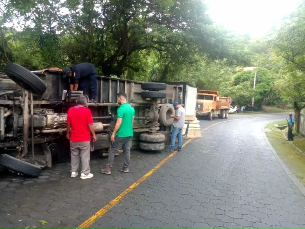 Cuantiosos daños materiales, dejó como resultado el vuelco de un camión blanco marca Hino placas NS 11266, cargado de productos básicos, en la comunidad de Orosí, kilómetro 253 de la carretera hacia Jalapa, en San Fernando, Nueva Segovia.