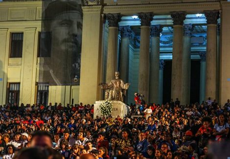 En las escalinatas de la Universidad de La Habana, donde el comandante en Jefe libró muchas batallas por Cuba y habló en muchas ocasiones a los estudiantes y jóvenes, las nuevas generaciones evocaron a Fidel, siempre Joven, a través de la poesía, el canto, banderas, carteles, fotos y flores, como ofrenda de amor y lealtad, diciendo al mundo que siguen cabalgando con Fidel, que sigue acompañando todas las batallas de Cuba, de nuestra América Latina y Caribeña, de la humanidad y por la humanidad. Fidel, que sigue, alumbrando el futuro con la antorcha de sus luchas y sus ideas.