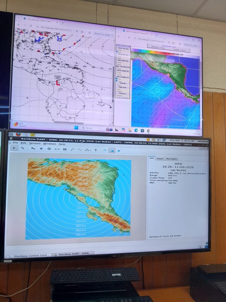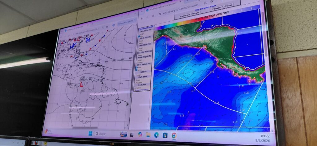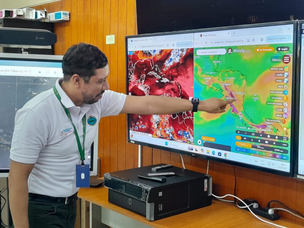 “El oleaje podría estar en promedio de entre 1.7 y 2.5 metros, importante en lo que es los sectores Sur de los litorales, es decir, en las costas del Caribe Sur y las costas del Pacífico, sobre todo arriba, podríamos tener olas de hasta 2.7 como mayor valor. Esto indica precaución a las embarcaciones pequeñas y menores, también precaución en mar adentro, es decir, alejado de las costas podrían ser superiores este oleaje y este viento”, advirtió Prado.