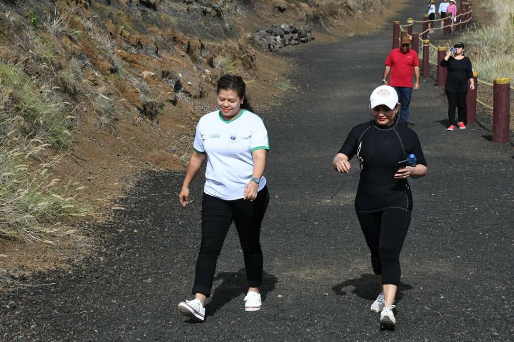 “Que Mejor que Venir a conocer y realizar ejercicios con un poco de adrenalina, vitamina N de la naturaleza que nos saca del estrés y la rutina diaria, una vez mas hacemos senderismo en el Parque Nacional Volcán Masaya y conocemos esa importancia ecológica de cada uno de los atractivos naturales”, declaró la Cra. Sumaya Castillo, Ministra del MARENA.