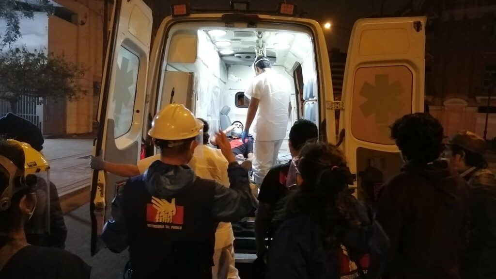 El médico añadió que hay tres pacientes adicionales que “llegaron con contusiones”. Además, en redes sociales, la Defensoría informó sobre un ciudadano alcanzado por una bomba lacrimógena y una joven herida. Mientras tanto el Ministerio de Salud confirmó durante la noche un total de 98 personas atendidas tras las manifestaciones.