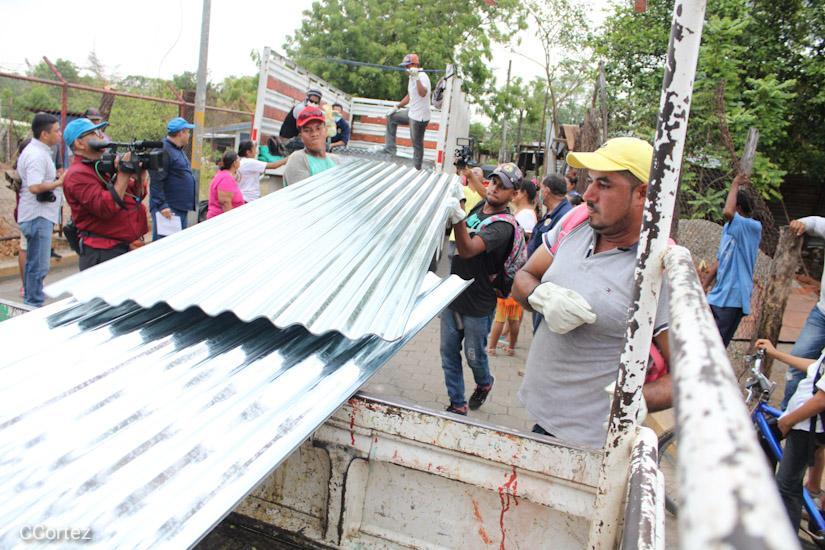 El Sistema Nacional para la Prevención, Mitigación y Atención de Desastres (Sinapred) garantizó en cortísimo tiempo láminas de zinc a los afectados en el casco urbano de Nagarote, (León) dentro el Programa Plan Techo del Gobierno Sandinista para mejorar y reparar la infraestructura de sus viviendas dañadas.