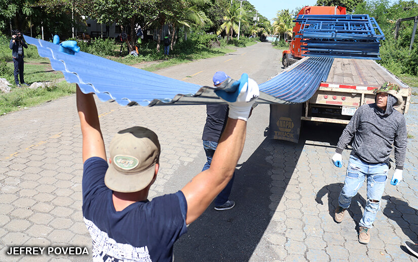 Los materiales consisten en armazón metálica para levantar viviendas, piedra cantera, arena y piedrín entre otros. Mas temprano otro convoy con alimento había sido despacho por las autoridades del Sinapred a la zona de emergencia por la inundaciones.