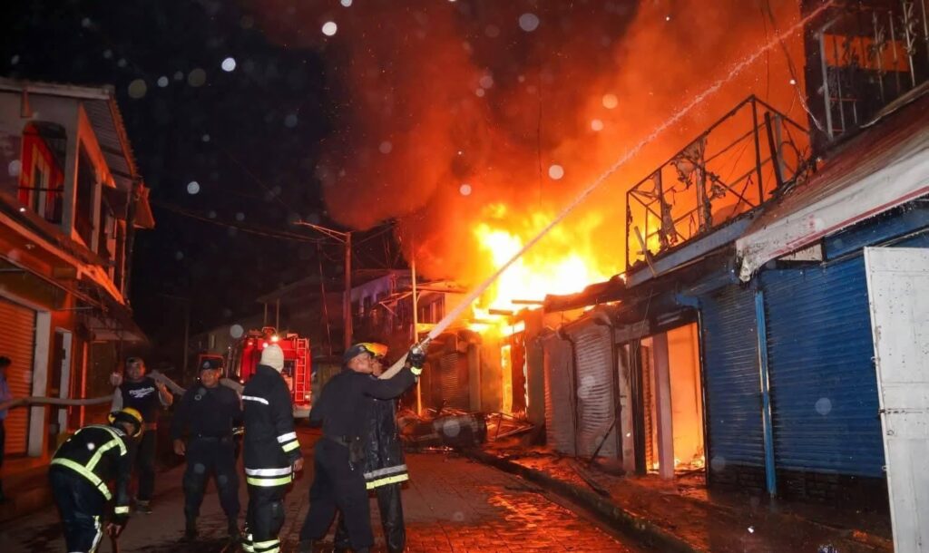 De acuerdo a un informe preliminar, las llamas consumieron por completo los cuatro tramos, donde estaban ubicados una veterinaria, una pastelería, una tienda de venta y reparación de celulares y un salón de belleza.
