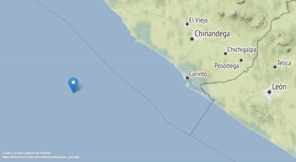 El Instituto Nicaragüense de Estudios Terirtoriales (INETER), indicó en su página web, que el movimiento telúrico se ubicó a 42 kilómetros al sur de la playa Jiquilillo.