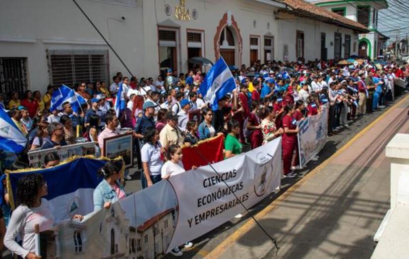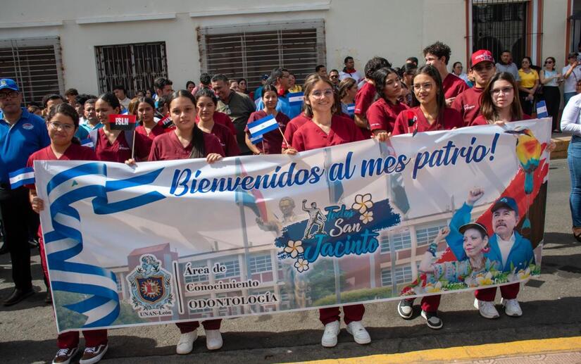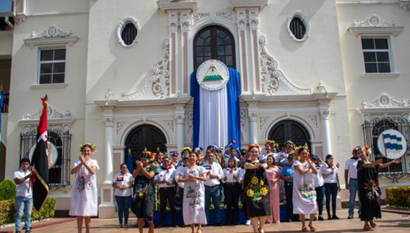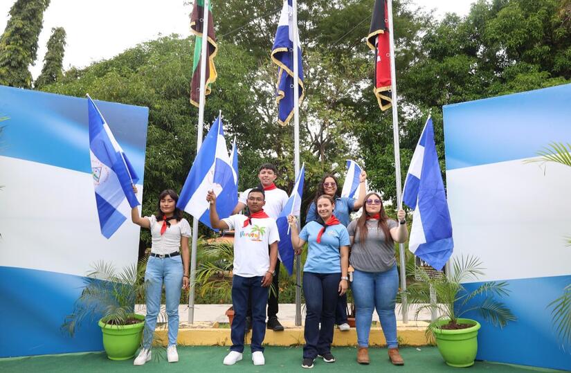 Con orgullo de ser nicaragüense los estudiantes enarbolaron la bandera de la patria, honrando a los Héroes y Heróinas nacionales y ratificando su compromiso en la defensa de la Soberanía nacional.