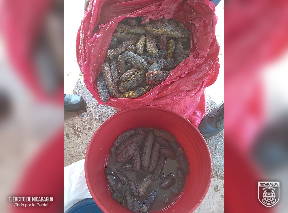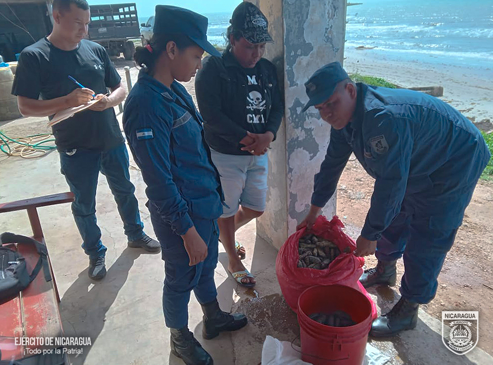 Entre el 9 y 10 de mayo, el Ejército de Nicaragua, ocupó tortugas verdes de la especie chelonia mydas, y pepinos de mar de las especies petate, molongo y lápiz”, que eran trasladados de manera ilegal violentando las leyes establecidas en el país.