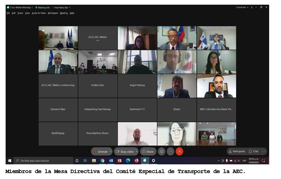 Esta mañana se celebró, en formato virtual, la I Reunión de la Mesa Directiva del Comité Especial de Transporte de la Asociación de Estados del Caribe (AEC).