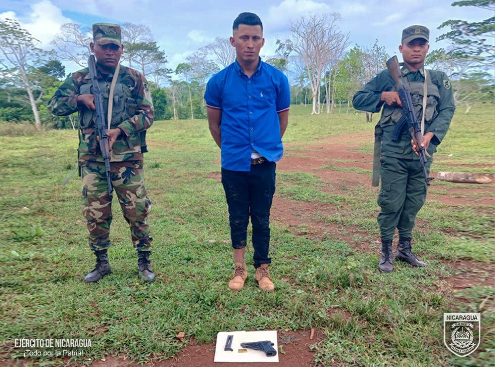 Asimismo, el Ejército informó que en el sector de la Ñoca municipio de San Carlos, se retuvo al nicaragüense Juan Antonio Gatica Picado, a quien se le ocupó un arma de fuego con 7 proyectiles de uso civil, sin la documentación legal establecida.