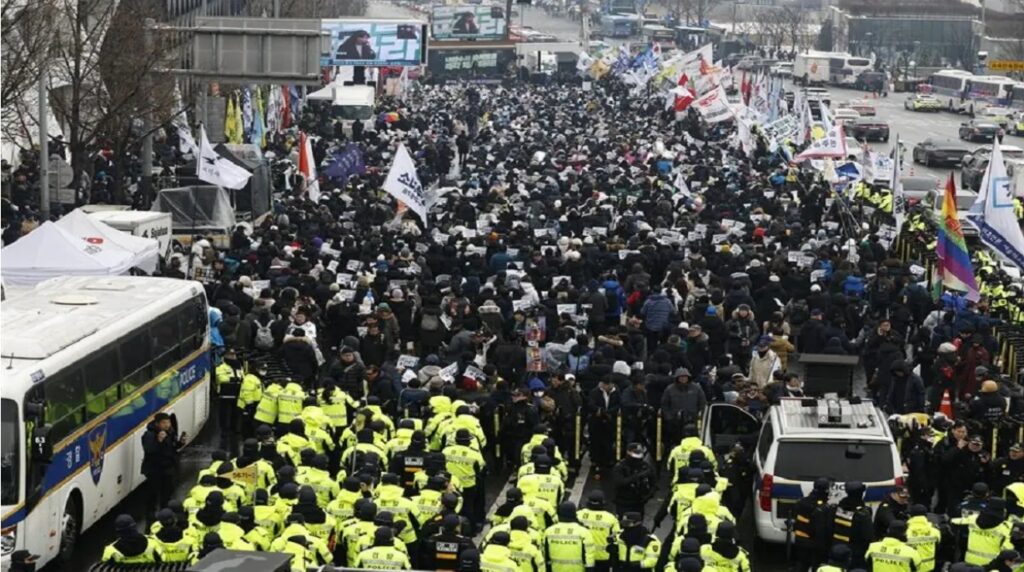 Durante esta jornada y pese a las bajas temperaturas, miles de personas se congregaron nuevamente en las inmediaciones de la residencia de Yoon para apoyar o rechazar su detención, que se cursó luego de que ignorase tres citaciones a interrogatorio. Faltan menos de dos días para que se venza el plazo para el arresto, que no se concretó días atrás porque el servicio de seguridad presidencial lo obstruyó.