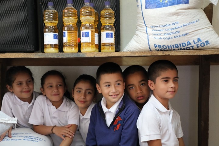 De acuerdo al organismo internacional, la UE está garantizando recursos económicos por el orden de 9 millones 393 mil dólares (los 8 millones de euros), para la alimentación de “182 mil niñas y niños de preescolar, primaria y educación a distancia en el campo de Jinotega y de la Región Autónoma de la Costa Caribe Norte (RACCN)”. Las raciones de comida son servidas en sus respectivas escuelas como parte de la Merienda Escolar Regular.