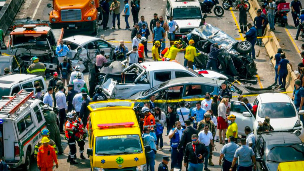 En los videos compartidos en las redes se observa cómo quedó la zona de desastre, tras los choques, y la acción de los equipos socorristas que tuvieron que sacar de los carros destrozados a quienes quedaron atrapados e inmovilizados en su interior.