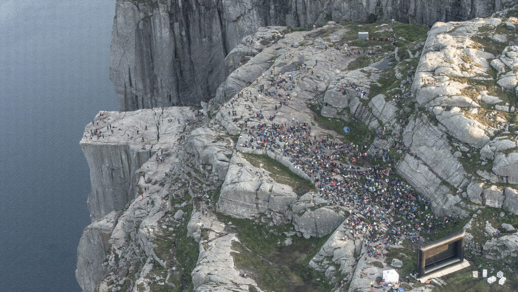 Sin embargo, no se trata de cualquier acantilado, sino de Preikestolen, ubicado en la costa sudoeste del país, que se utilizó como lugar de rodaje para una de las escenas de acción más importantes de la película ‘Misión imposible’ de 2018. Es una de las rutas de montaña más famosas de Noruega que recibe unos 300.000 visitantes al año.