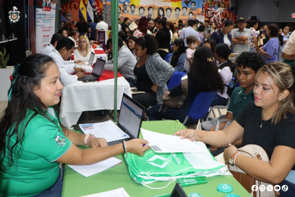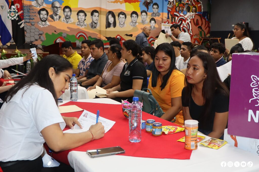 Más de 200 estudiantes del quinto año y egresados de diversas carreras participaron este martes, de una feria de empleo con 14 empresas, organizada por la Universidad Nacional Autónoma de Nicaragua (UNAN-Managua) y el Ministerio del Trabajo.