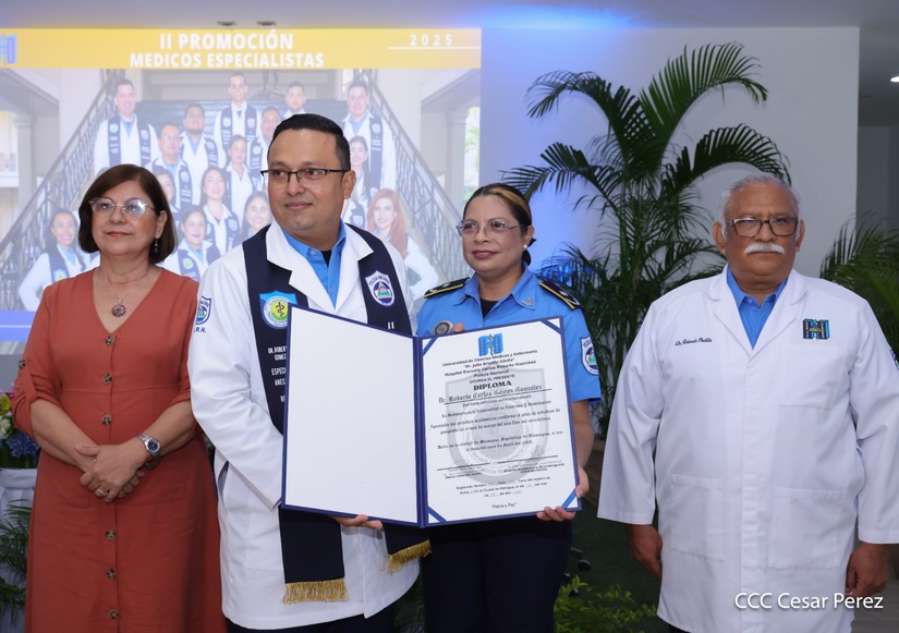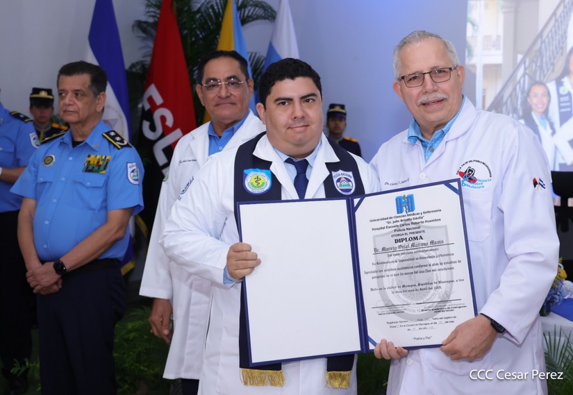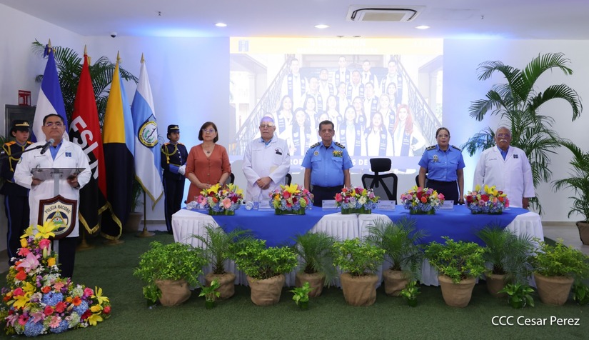 “Sabemos que su camino no ha sido fácil, ha estado marcado por incontables horas de estudio, agitados turnos, sacrificios personales y familiares, sin embargo su pasión por la medicina los ha impulsado a perseverar esta meta tan anhelada que ahora inunda de alegría y orgullo a sus seres queridos. Hoy Nicaragua celebra este logro y reconoce su valioso aporte a la patria. Su especialización en diversas áreas de la medicina fortalecerá nuestro Modelo de Salud Familiar y Comunitaria; y permitirá brindar una atención más integral con calidad y calidez humana”, declaró el Jefe de la Policía Nacional, primer comisionado Francisco Díaz.