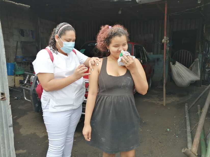 Una brigada del Ministerio de Salud (MINSA), visitó este martes a los pobladores del barrio Hugo Chávez, en Managua, para atender a las familias que aún no han completado su esquema de vacunación contra la COVID-19.
