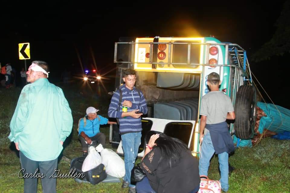 Ocho personas resultaron lesionadas, después que una unidad de transporte público, terminó volcada por presuntos desperfectos mecánicos, la noche del martes en la comunidad Fonseca, 5 kilómetros antes de llegar al municipio de Siuna, Costa Caribe Norte.