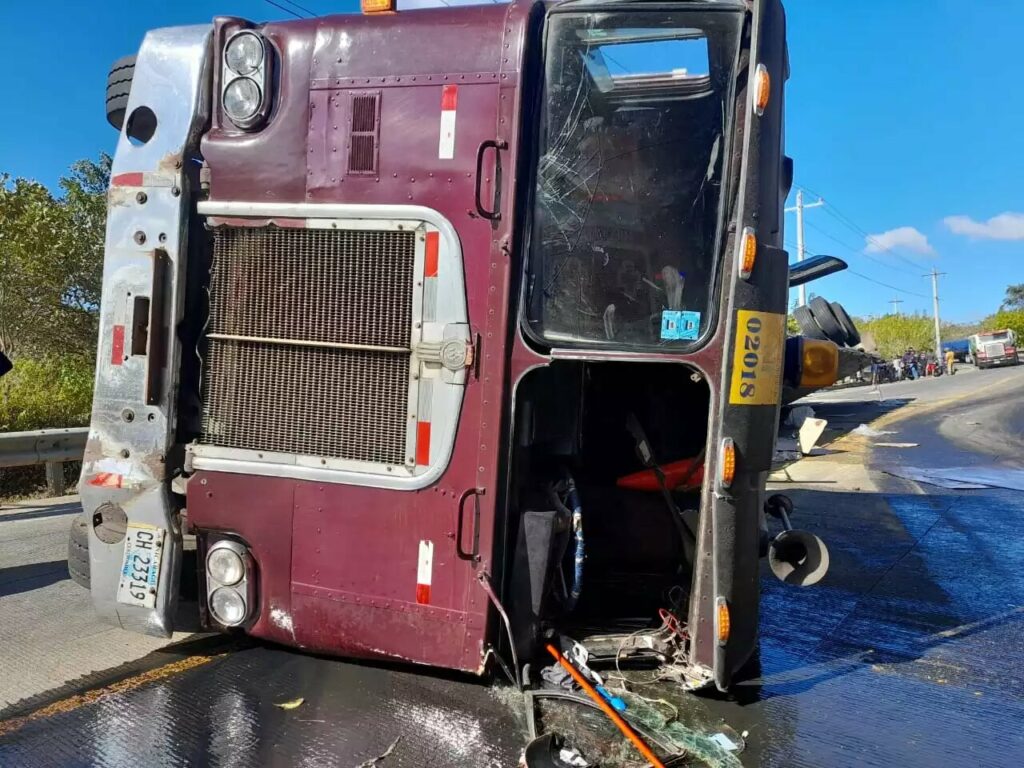 Por el momento se desconocen las razones de vuelco, la policía investiga el caso, y los bomberos vierten agua en el lugar para evitar otro accidente, debido al aceite esparcido del automotor.